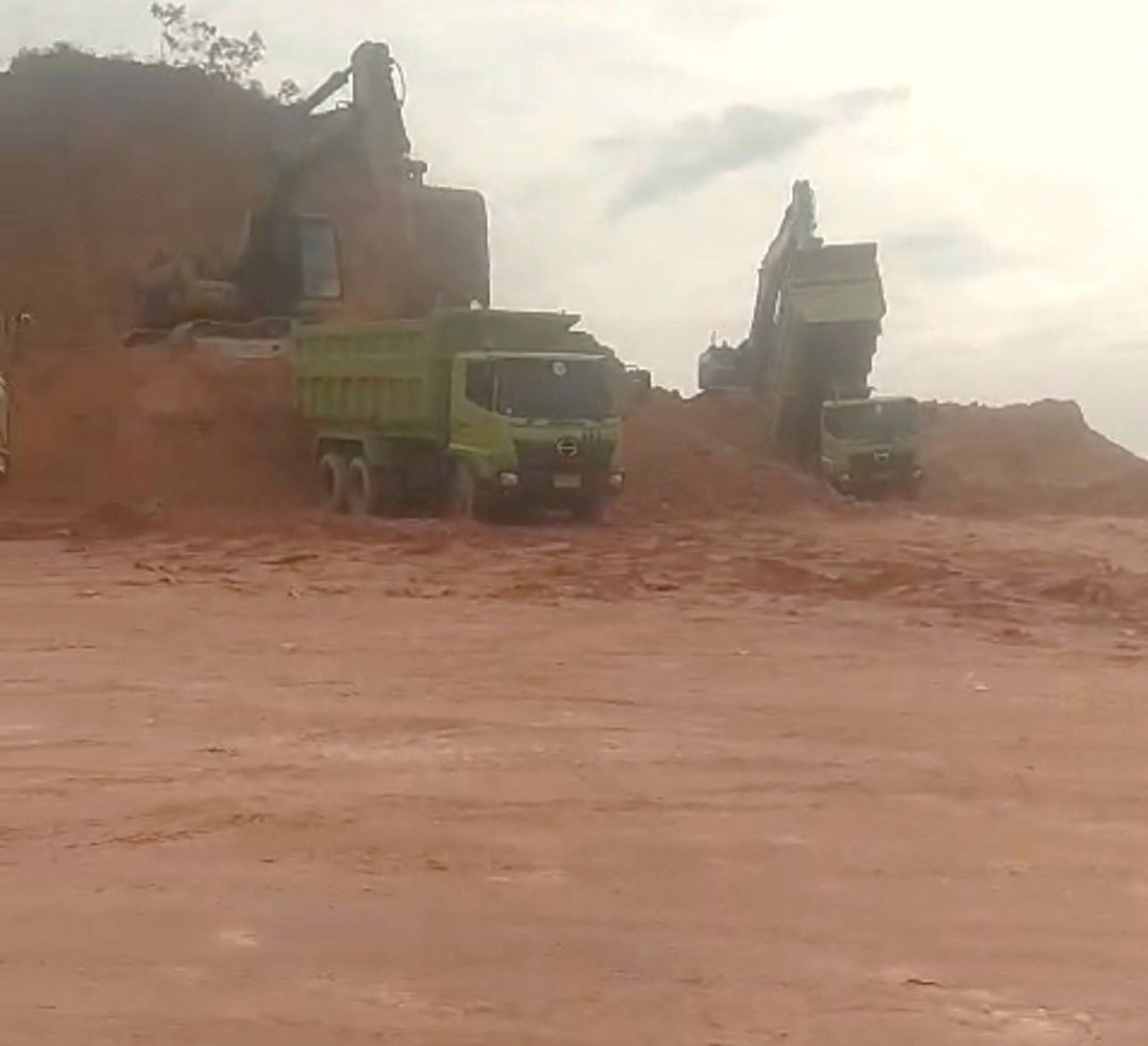 Dari pantauan lapangan, sejumlah alat berat seperti ekskavator dan dump truck tampak hilir-mudik mengangkut material tanah dari area perbukitan menuju titik penimbunan lain. Aktivitas berlangsung masif tanpa papan proyek, tanpa keterangan izin, dan tanpa dokumen lingkungan seperti UKL-UPL atau AMDAL yang seharusnya menjadi prasyarat kegiatan serupa.